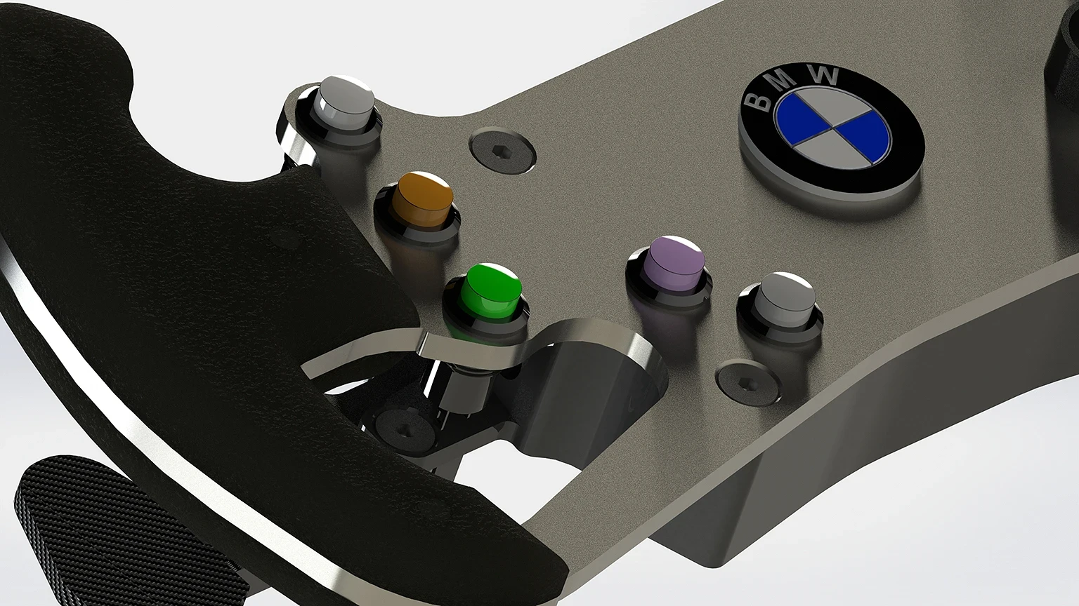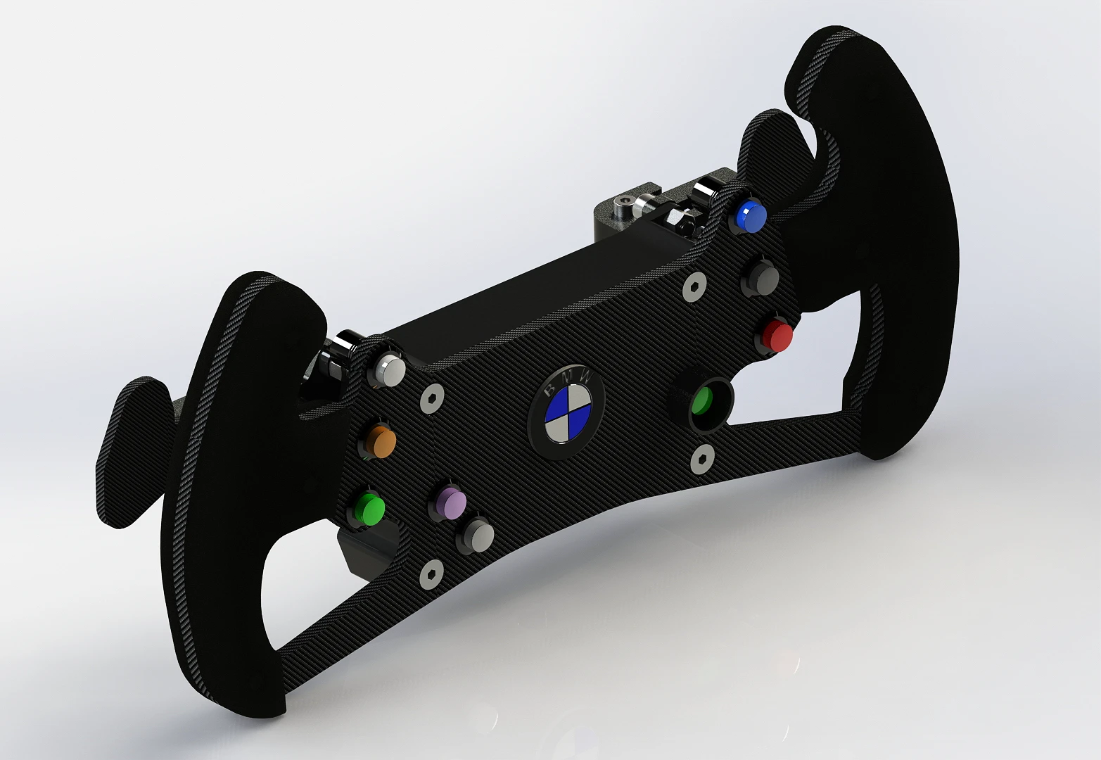 Make it look as aggressive and refined as a real DTM wheel. Wrap the grips in leather, rubber, or alcantara, and finish the body with a carbon-style overlay for that authentic race-car aesthetic.